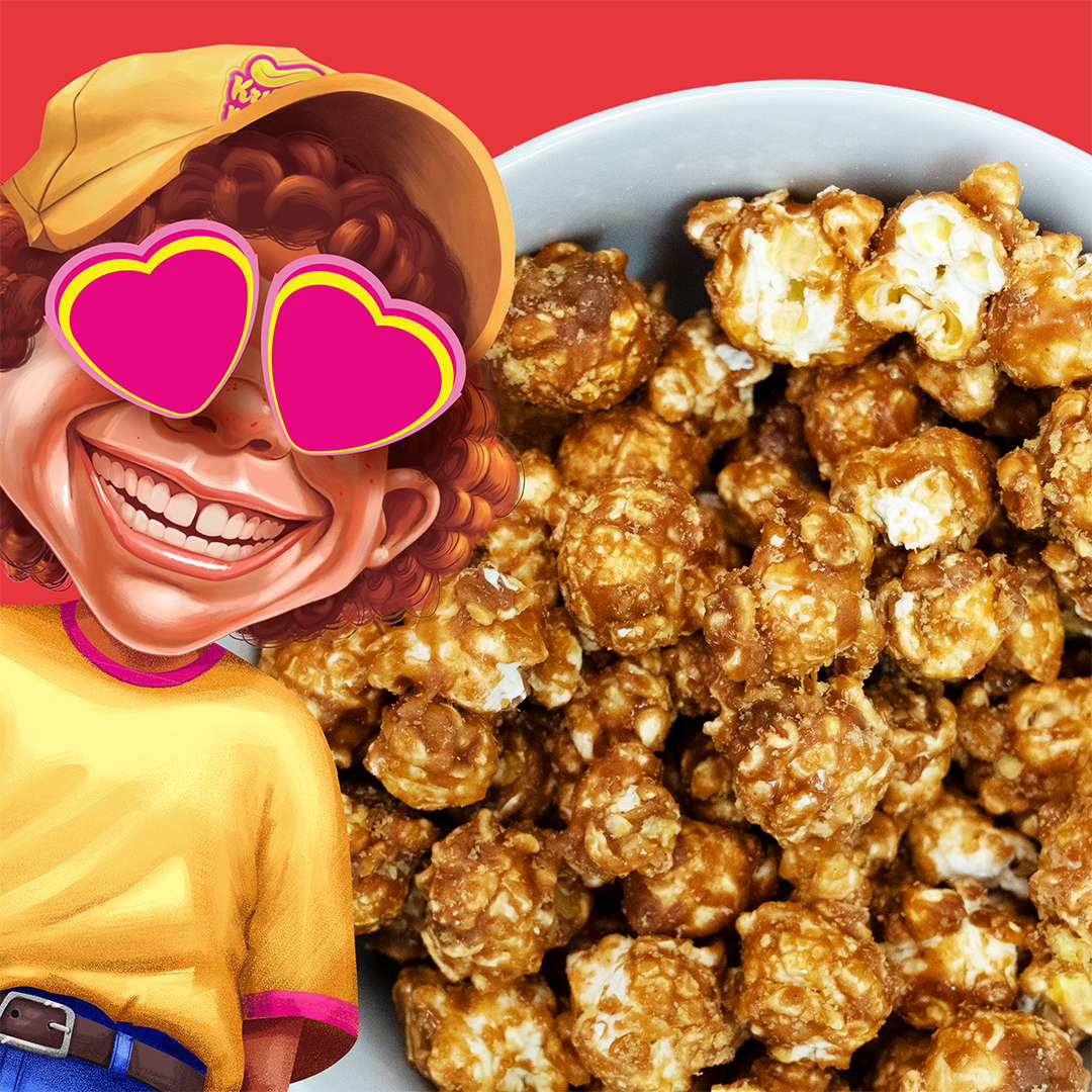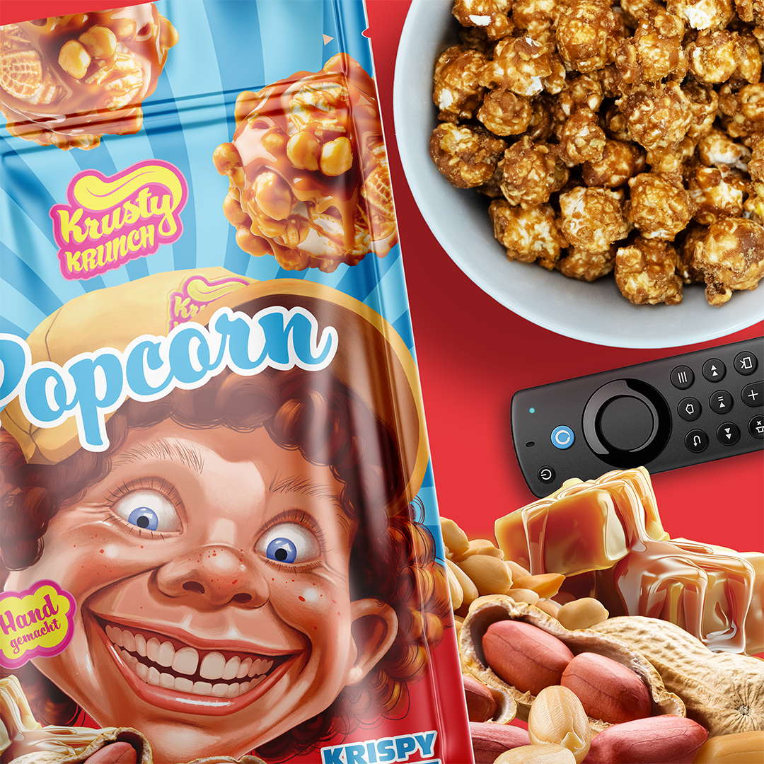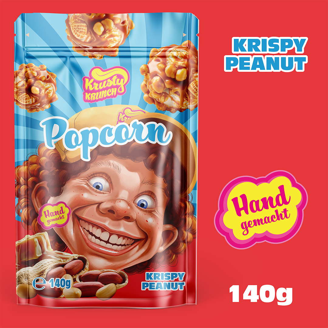 Karamelizirane kokice Krusty Krunch, obogatene z zlatim karamelom in hrustljavimi arašidi – edinstvena kombinacija, ki združuje sladkost in oreščkasto hrustljavost v popolno doživetje.